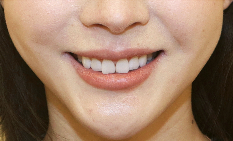 上前歯中央2本の歯並びと歯の形を改善し、2番目3番目との歯並びを整えました。そしてより華やかな印象の口元になるように4番目を少し目立たせるように並べて配置しました。