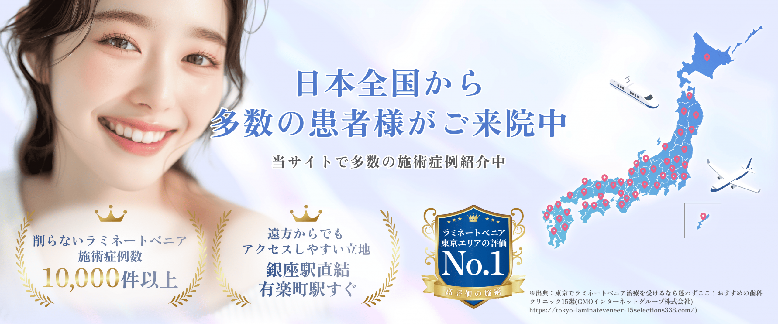 近年では**歯を一切削らない「削らないラミネートベニア」**が可能なクリニックも増えています。