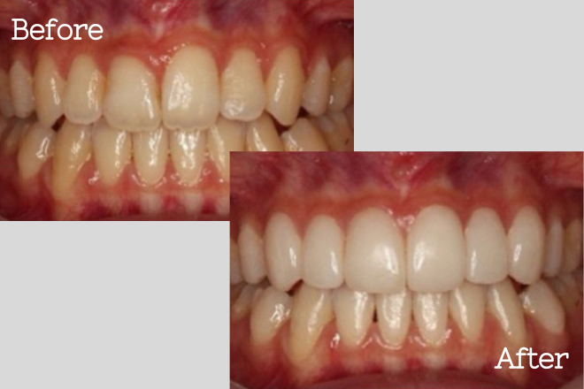 - 歯列矯正(マウスピース・ワイヤー矯正など)で長く見えている歯を目立たせなくする