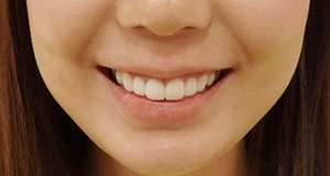 歯肉整形を行うことで歯肉が見える範囲を少なくし、口元の印象が大きくに変わりました。
