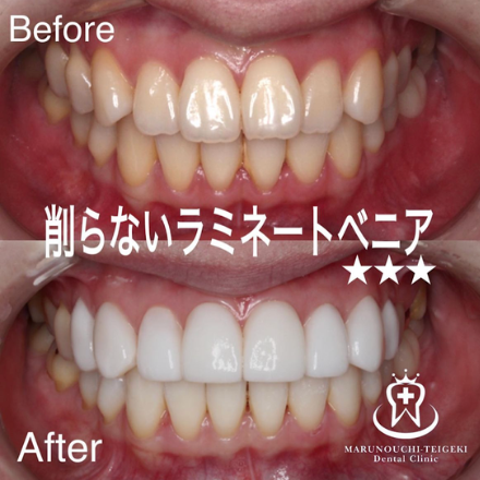 丸の内帝劇デンタルクリニックでは、歯を一切削ることなくラミネートベニアを施すことが可能です。