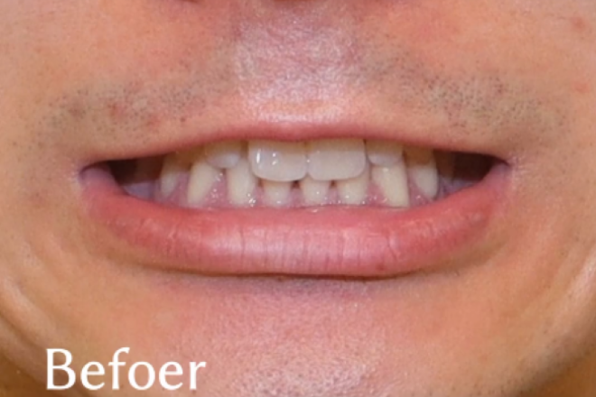 Before写真を見るとわかるように、笑ったときの上前歯が見えにくくなっています。