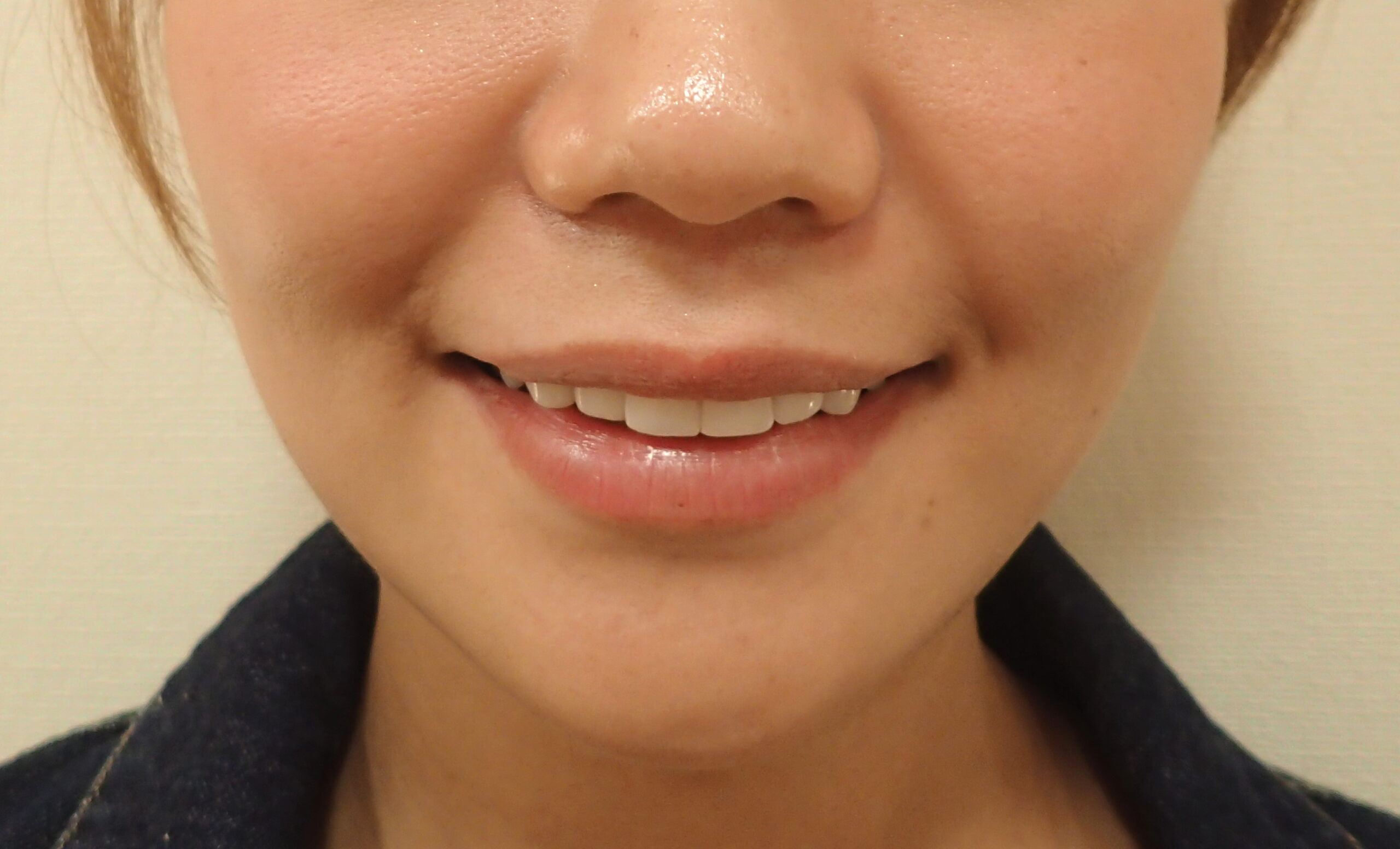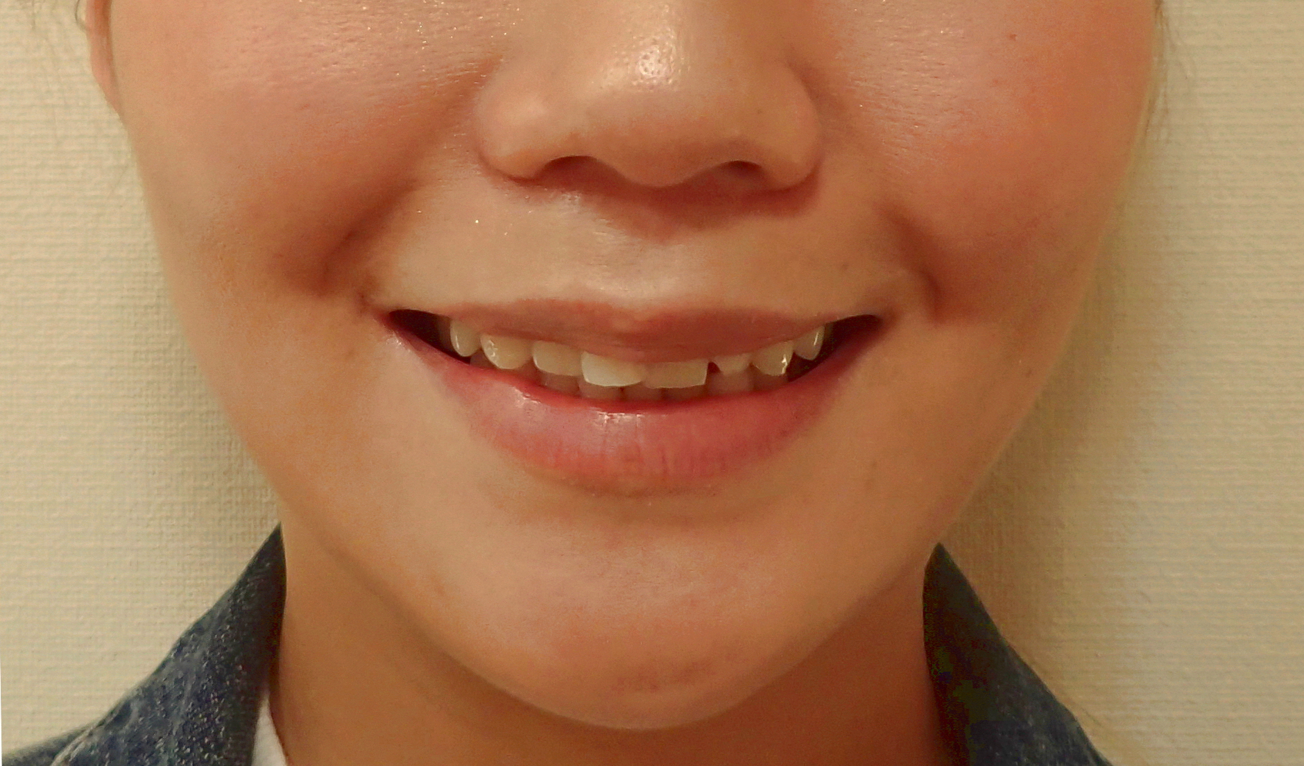 歯と歯の隙間をなくして、スマイルラインに沿ったキレイな仕上がりになりました。