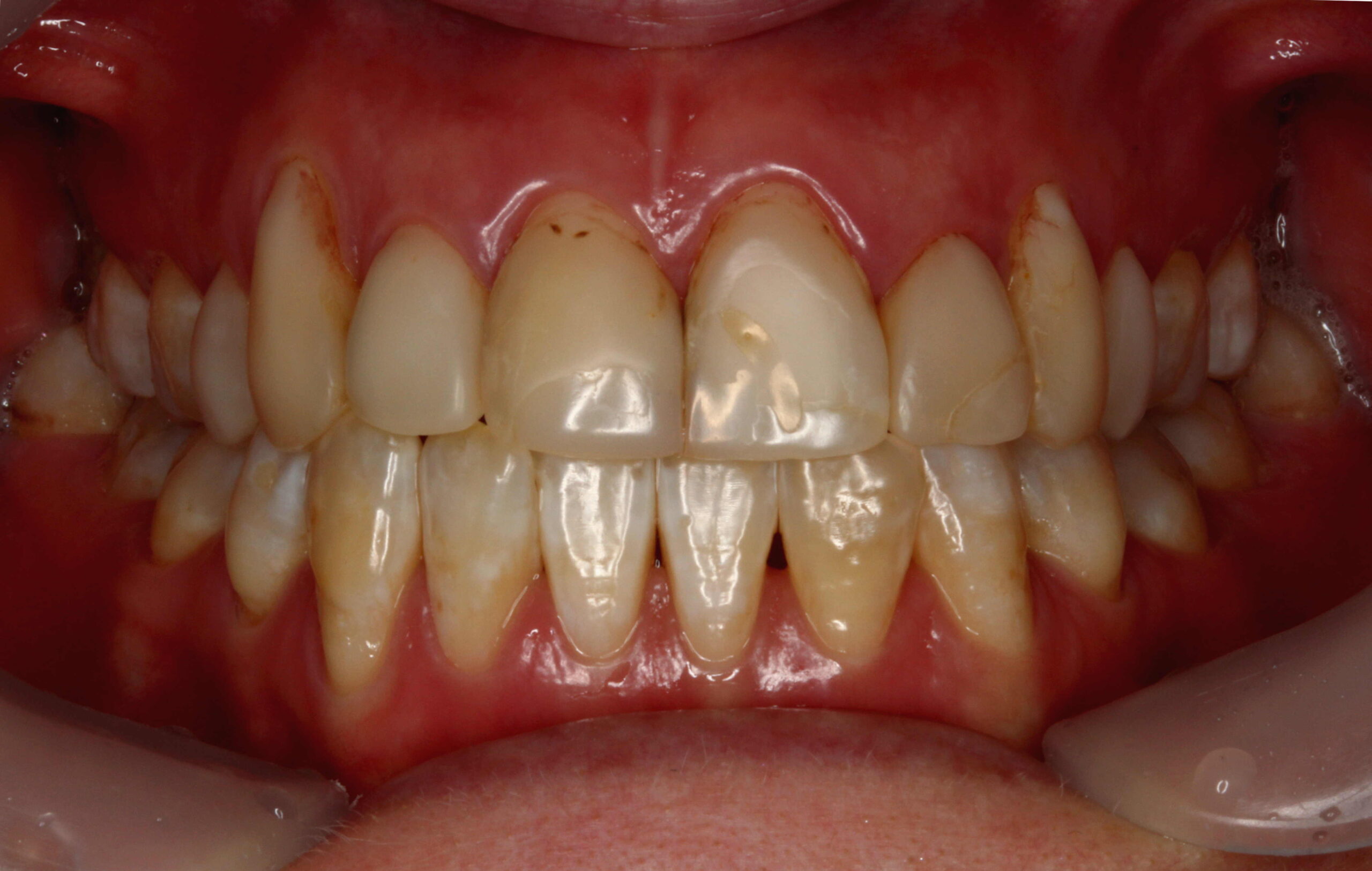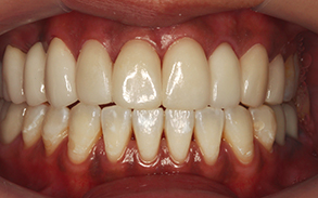 他院で治療したセラミッククラウン左上2とセラミックブリッジ右上543の治療よりも、もっと統一感を出してキレイにしたい、ブラックトライアングルを改善したいとのことでした。