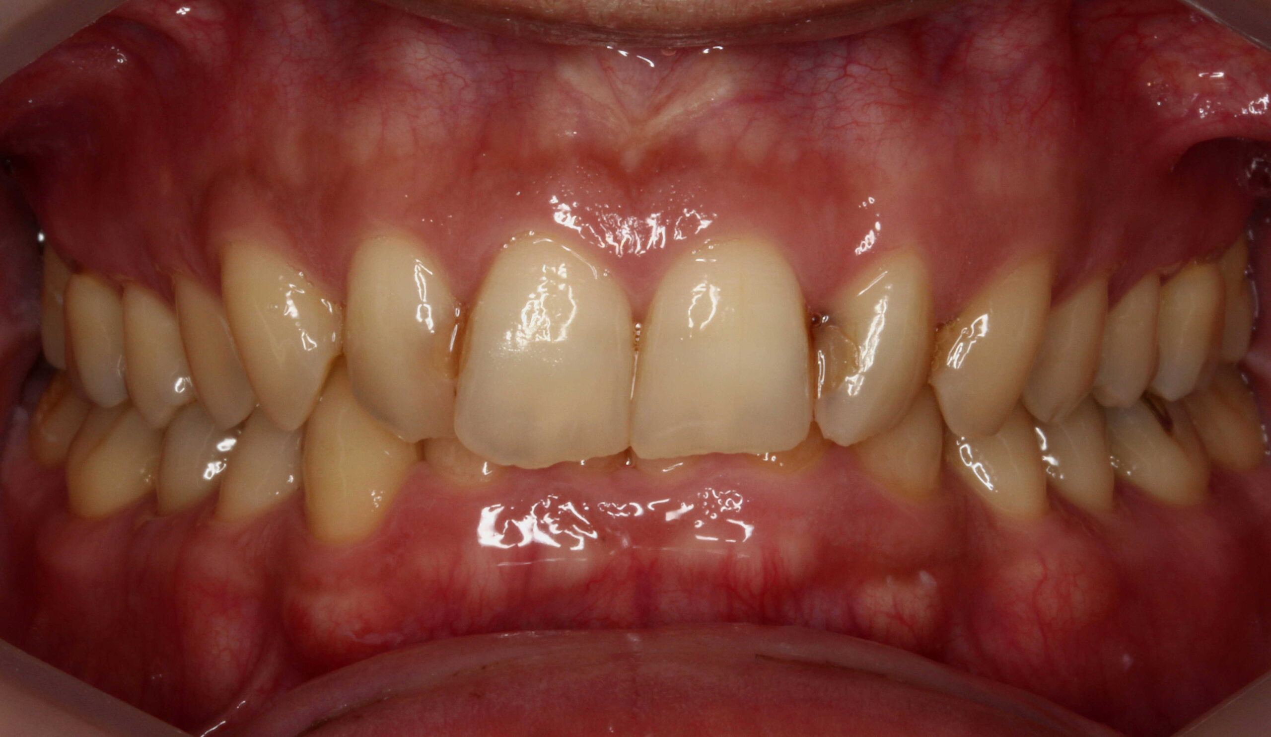 黄ばみと歯並びを削らないラミネートベニアでの治療希望でした。