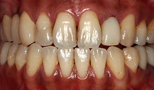 左上2のセラミッククラウンの治療は歯肉整形処置(歯肉を切って歯の長さを出す外科処置)を併用しました。