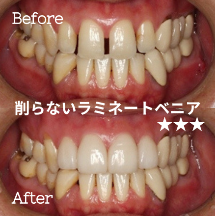 しかし、削らないラミネートべニアなら多数歯治療でもダメージが最小限で痛みなく安心して治療できます。