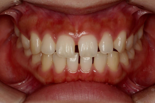 こちらの患者様は、上の前歯の間に隙間ができており、その隙間が非常に目立つ状態でした。