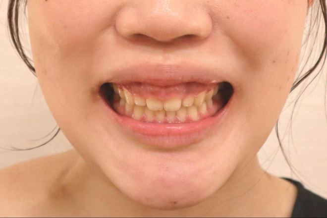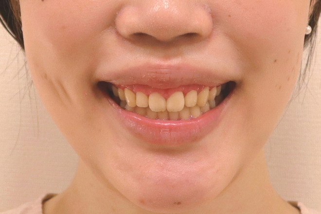 この状態では、笑ったときに歯茎が多く見えるため、ガミースマイルが目立つ状態でした。