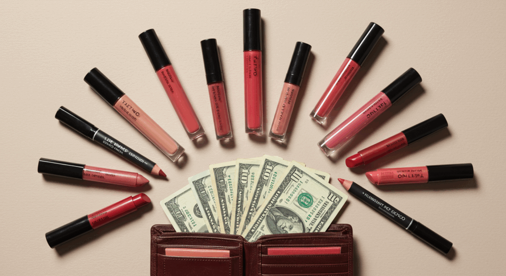 例えば、一般的な口紅の価格は2,000円〜5,000円程度。これに加えて、リップライナーやリップグロスなどを使用する方も多いでしょう。これらの製品は3〜6ヶ月で使い切ることが多く、年間で考えると決して安くない出費になります。