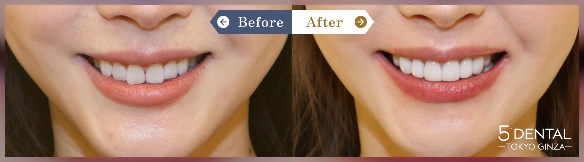 削らないラミネートベニアで歯の色・歯の形を改善した症例です。ラミネートベニアは前歯をキレイに華やかにすることができます。